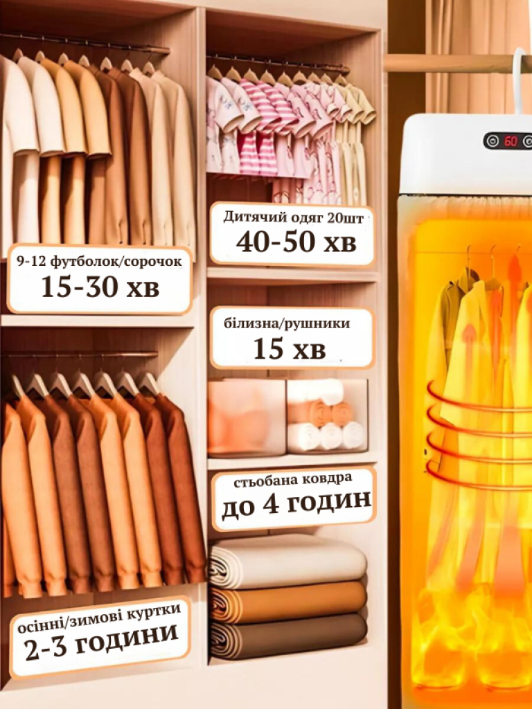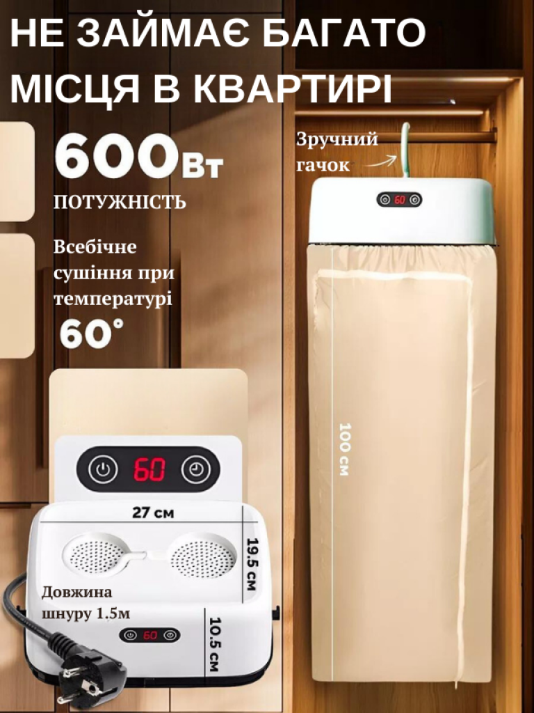 Дуже зручно та швидко сушить! Я в захваті! Кімната маленька,